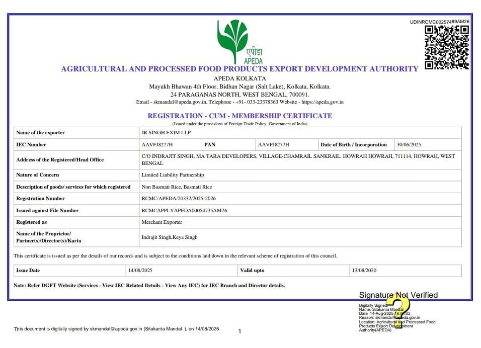 Cirtification Certificate Of Incorporation Lisense Of Trade ISO Cirtificate IEC Code GSTIN Registration Cirtificate Apeda RCMC Cirtificate JRS Exim Means Priority Quality Intrigrity